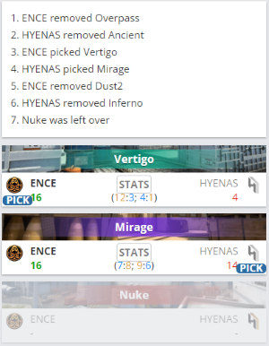 ENCE 2-0 HYENAS(Vertigo 16-4;Mirage 16-14;Nuke)
