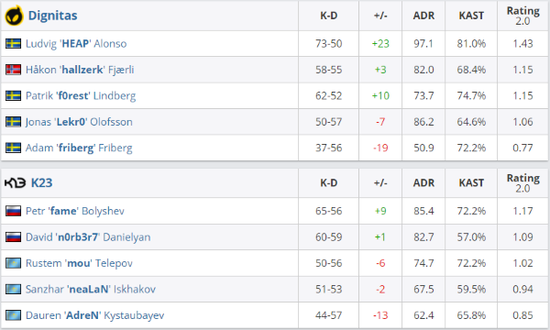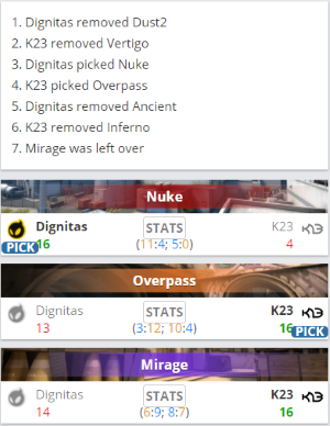 Dignitas 1-2 K23(Nuke 16-4;Overpass 13-16;Mirage 14-16)