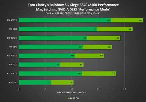 在本月初的COMPUTEX 2021展会上,NVIDIA宣布《彩虹六号: 围攻》(Rainbow Six Siege)将引入NVIDIA DLSS。上周,DLSS作为第6年第2赛季北极星行动更新的一部分推出,在4K分辨率下Vulkan版性能提升50%,在4K分辨率下每项设置最大化,所有GeForce RTX GPU都达到100+FPS。