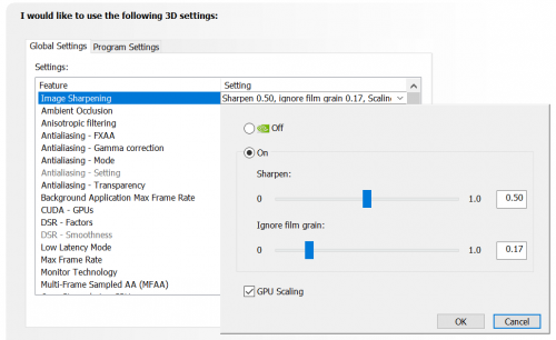 要开启NVIDIA图像锐化,请打开NVIDIA控制面板,进入 "管理3D设置",并打开图像锐化,选择 "GPU缩放"。在游戏设置中设置所需的分辨率,它将自动应用NVIDIA的升频和锐化功能。
