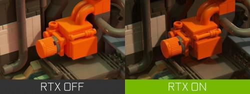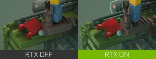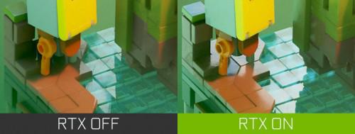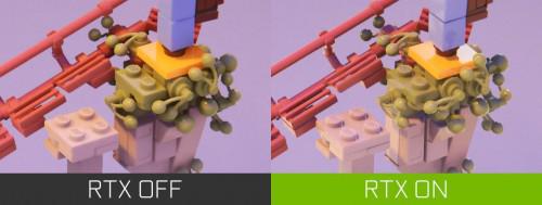 光线追踪阴影甚至可以覆盖到积木之间最细微的缝隙,使用光栅化则不够清晰和完整。游戏中积木建造的世界更真实,因为阴影使物体保持如同现实世界一样的形状和形式,进一步提高清晰度、细节和真实感。
