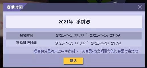 生涯联赛将会是一个长期的活动赛事,季前赛周期为7月1日服务器维护后~9月30日24点,7.1~7.14上午24点前可以在生涯联赛界面中进行报名,7月15日将正式开启生涯联赛。