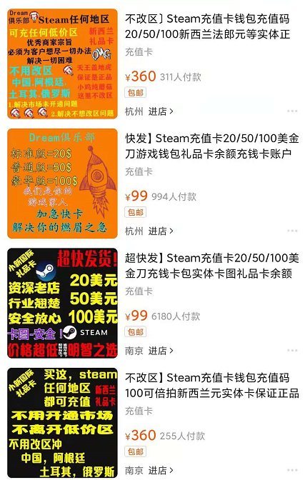 首先聊steam黑卡的风险,我们在TB上购买的充值卡,其实都是黑卡。一般选择黑卡的小伙伴应该都和笔者一样,清楚这其中的风险,以及获利。获利自然就是相较于直接充值,我们购买的黑卡,相当于打了8.8折或者更低。风险的话,就比较多了。首先一点,就是可能面临红信危险。被红信的话,账号会被封禁,除此之外,此前黑卡购买的内容,全部被清空。当然,严重的会直接封号。