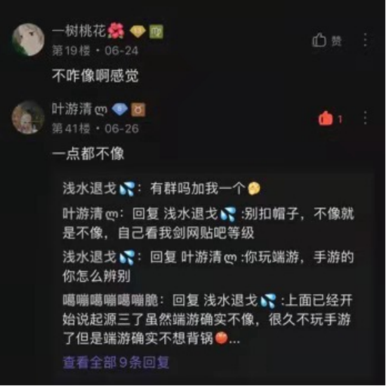 此操作也引发了玩家们狂风暴雨般的吐槽,许多小伙伴纷纷调侃如果这样叠图也能行,那我就分分钟开撞天仙AB彦祖金城武。除此之外,就连碰瓷方的自家玩家都表示实在是看不下去,许多玩家都说两者一点都不像,却没想到被喷成是水军。此类行为在之前的扒鸡事件中也出现过,看来这套路确实是一模一样。