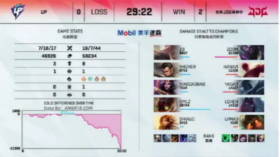 在这场比赛不难看出,两队实力相差太大,以至于JDG是全方面的压制,从UP整体阵容来看,每个英雄多偏向发育型,发育型英雄本身就需要一个优秀的前期发育过程,没有足够的经验和金币去托起,并且一直受到JDG单方面的压制,经济差距的渐渐拉大,使得到中后期都没能发育起来。