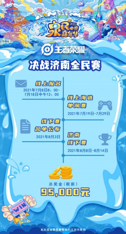 《王者荣耀》线上赛部分采用5V5的单淘赛制,来自全国各地的召唤师将会在线上决出16个名额,汇聚山东济南,展开最终的线下角逐。奖品丰厚,机会难得,赶快报名参加!