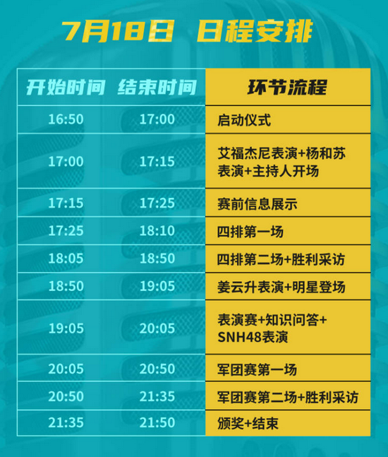 7月18日14:00将会进行《和平精英》2021行业生态交流会,16:50启动仪式之后,将进行明星嘉宾表演,四排TPP、表演赛以及军团赛。