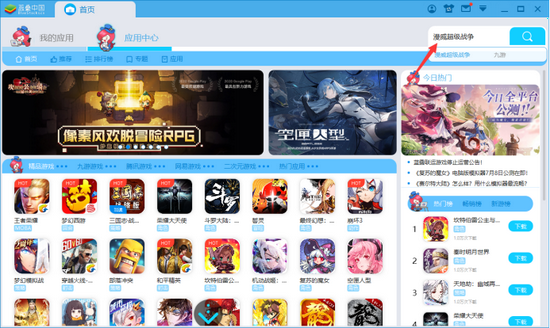 方法2:进入“应用中心”首页,通过推荐游戏,也可找到《漫威超级战争》。
