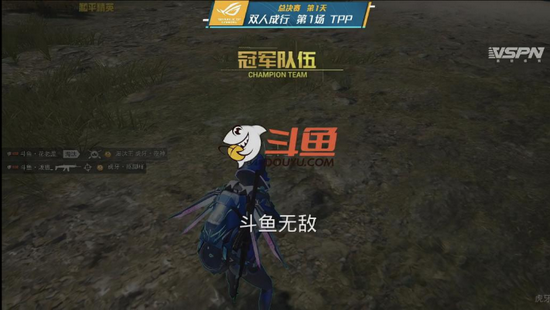 凭着精彩的运营与操作,QFZ、斗鱼无敌、无忧、Salamander White战队进入决赛圈,QFZ抠脚样率先出击,淘汰Salamander Whit,与斗鱼无敌泼痞正面对拼,经过一番绕树拉扯之后,抠脚样子弹库存变空,最终斗鱼无敌成功拿下双排第一局。本局战罢,夜神与抠脚样所在的QFZ战队以20积分暂列第一。