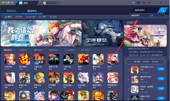 方法2:进入“应用中心”首页,通过推荐游戏,也可找到《剑侠世界3》。