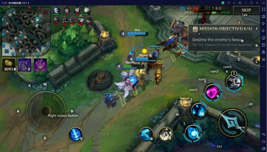 《英雄联盟》手游作为MOBA游戏,操作能力是决胜关键,尽管移动端简化了操作,添加虚拟摇杆,弱化指令操作,但是相对键鼠操作而言,稍显逊色,尤其是补兵经济中,摇杆操作会限制了很多玩家的发挥,而在电脑版中,基于电脑的操作特点,依然可以跟端游一样,保持手游版的竞技乐趣,采用端游操作方式,而夜神模拟器为了能够最大程度上的提升玩家的体验,特别针对,每个一英雄配置了专属键盘,玩家只需要根据自己的需求,选择英雄,与其匹配的键鼠操作模式便会自动适配,即使是亚索、劫之类比较吃操作的英雄也可以得到很好的发挥。