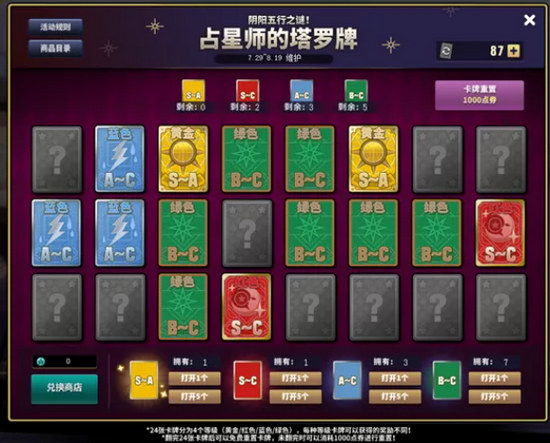 未翻完24张卡片时可以消耗1000点券进行重置。翻完24张卡牌后可以免费进行重置。