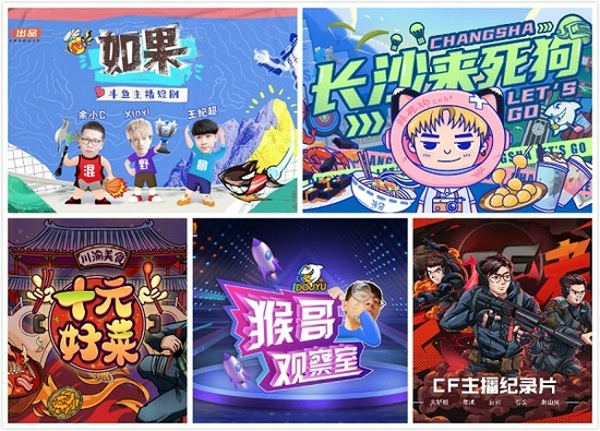 围绕职业赛事,斗鱼推出了《大意了兄弟》、《拖米茶话会》、《葛大爷情报站》等综艺视频,为用户挖掘赛场内外精彩纷呈的赛事衍生内容;围绕主播个人IP,斗鱼量身打造《猴哥观察室》脱口秀、《寅子今夜秀》单口相声、《长沙来死狗》真人秀等综艺节目,将主播自身的优势和特色放大,为粉丝带来轻松有趣、寓教于乐的游戏视频内容;结合节日热点,斗鱼特别制作《我点你买单》年夜谈话综艺,给观众的新春年夜献上一道有趣又下饭的开胃菜;紧随当下潮流,斗鱼上线了网络幽默微短剧《如果》,结合水友们熟知的“弹幕梗”,又好玩又好看。如今,斗鱼更是携手前职业选手,重磅出炉CF纪录片《火线老炮儿》和CFHD户外真人秀《开火吧!兄弟》,娱乐之余更是对热血青春的缅怀。