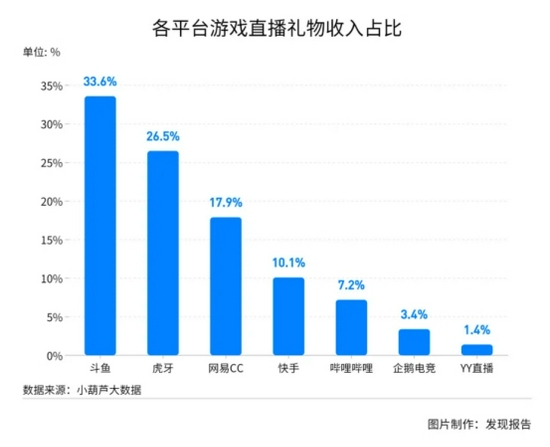 通过2020年游戏直播礼物在各平台的收入占比可以看出,斗鱼以33.60%的占比,成为用户最乐于为其付费的游戏直播平台。