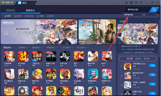方法2:进入“应用中心”首页,通过推荐游戏,也可找到《葫芦娃兄弟》。