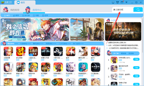 方法2:进入“应用中心”首页,通过推荐游戏,也可找到《真·三国无双》。