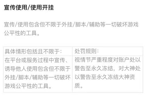 在比心平台规则中,有明确规定,宣传使用外挂破坏游戏公平性,经查实会对相关账户进行警告至永久冻结处罚。据比心公布数据,2021上半年因宣传使用外挂/代练行为受到处罚的账号一千余个,超过20%的违规账户被永久冻结。比心相关负责人表示,比心严厉打击代练、外挂等违反电子竞技公平原则的行为,用户首次被发现违规会处以7天以上账号封禁处罚,多次累计触犯将永久冻结账号及资质。宣传使用外挂行为是对绿色电竞生态建设的破坏和阻碍,比心始终贯彻严格治理原则,坚决倡导、维护游戏公平性。