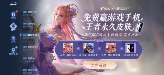 “王者荣耀永久皮肤”、“免费赢ROG游戏手机”,来自好基友的三言两语打断了小编作为单身游戏boy在七夕节的伤感,你说这我可就不困了!