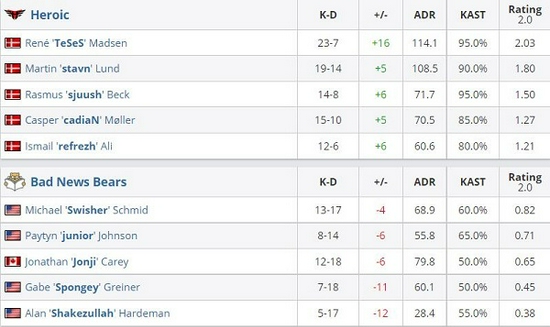 Heroic 2-0 Bad News Bears(Mirage 16-1;Nuke 16-4)