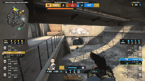 攻防互换后再次赢下手枪局的Vitality进一步扩大比分优势,但ENCE重新在长枪局中找回排面,经济不足的Vitality只得混起赌A防守,关键先生ZywOo再次发挥在A区前点拿到首杀,ENCE迅速做出反应爆B进攻,ZywOo与apEX二人直冲下水道,大番薯强换两人,最终在一波人头互换后来到misutaaa的1v1残局,Snappi反摸长管却被misutaaa沙鹰一发秒杀,Vitality抢先一步拿到赛点。次局Vitality在开局先掉两人的情况下,三位法国年轻人形成坚实的三叉戟,将进攻方五人悉数缴杀,最终Vitality以16-8赢下比赛。