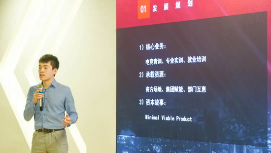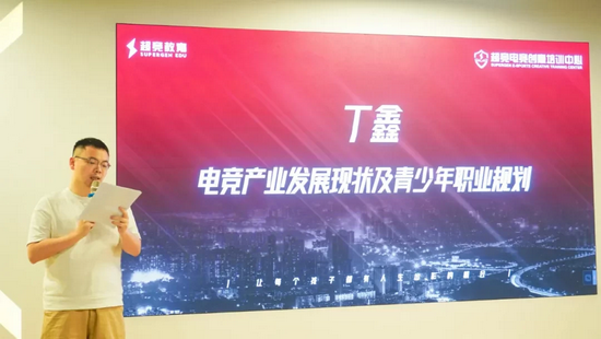 随后,超竞教育品牌商务部负责人丁鑫上台,向学员介绍电竞产业发展现状并进行了职业规划引导,表示希望同学们可以在职业选手、赛事运营、数据分析师、解说、编导等各个电竞岗位中发光发热,能担起对自己的责任,锻造出最好的自己。