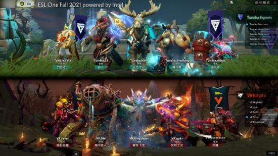 第一局比赛Tundra选到了中单光法和三号位狼人两手绝活。大哥拿到编织者,双酱油搭配了撼地者和全能骑士。VP则是选出了潮汐猎人、暗影恶魔和冰龙三手反手保团英雄,搭配上了血魔和灰烬之灵两名冲脸大哥予以应对。