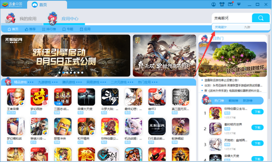 方法2:进入“应用中心”首页,通过推荐游戏,也可找到《灵魂潮汐》。