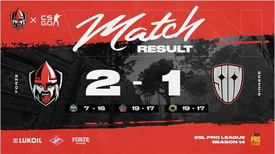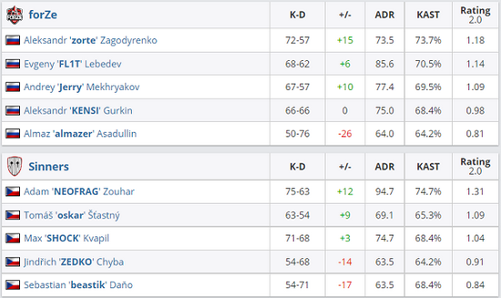 forZe 2-1 Sinners(Nuke 7-16;Mirage 19-17;Ancient 19-17)