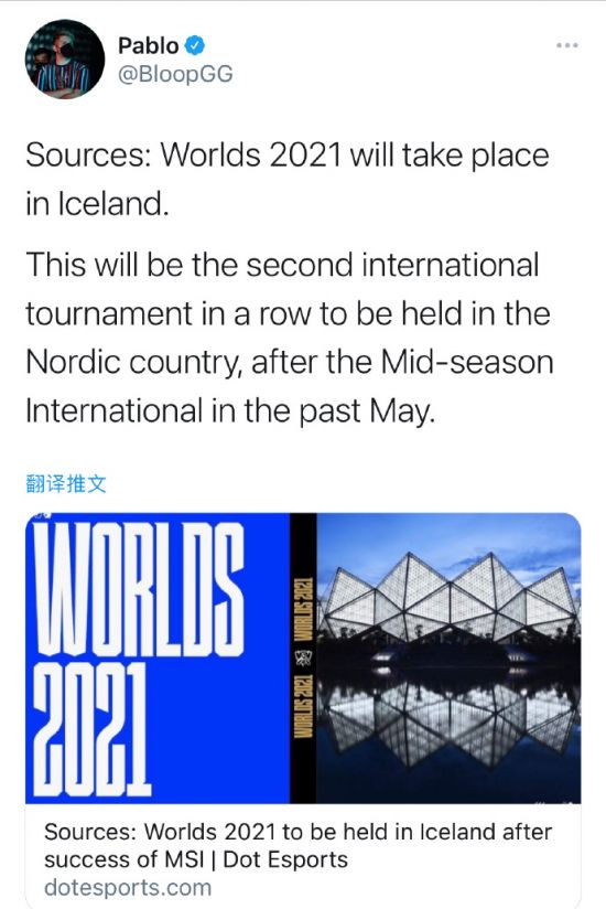 据外媒记者Bloop爆料,S11全球总决赛将在冰岛举办。这将是继5月MSI后在冰岛举办的第二个国际赛事。