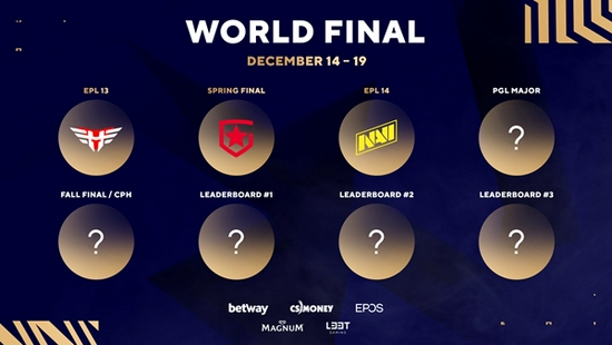 该项年终大赛尚有5个未决出名额,它们分别将分配被Major冠军、BLAST秋决冠军以及BLAST世界排名的前三名。在目前的BLAST赛事中,积分名列前茅的战队有G2、NIP以及OG,他们都是这三个名额的有力竞争者。