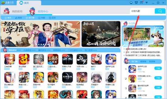 方法2:进入“应用中心”首页,通过推荐游戏,也可找到《幻世九歌》。