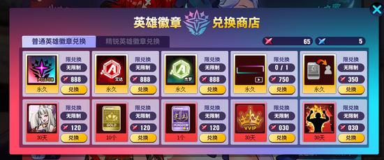 抽取道具时会获得“英雄徽章”,用于兑换道具以及新角色卢比&玛琳。