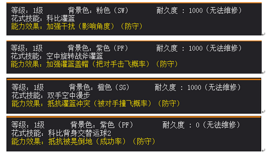而防守端的话优先选择抵抗背2倒地成功率,和角度,然后再搭配上一些PF常用扣篮动作的盖帽成功率及距离。