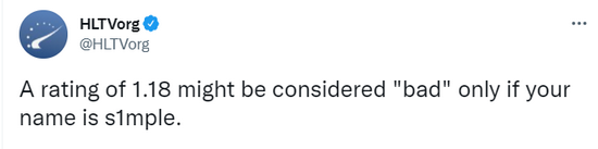 s1mple夺得C组Rating榜单榜首可谓众望所归,但他并非遥遥领先于后方大部队,而是以0.02的优势力压FaZe的broky。难怪HLTV在推特调侃道:“只有当你是森破时,1.18的Rating才能被称之为‘表现不佳’。”