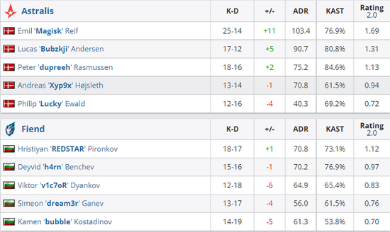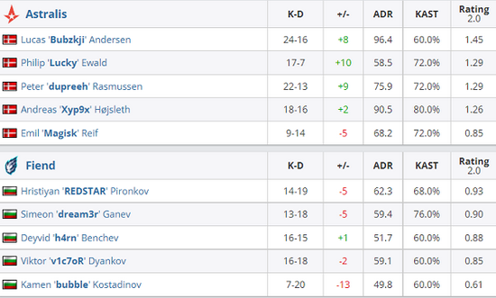 Astralis 2-0 Fiend(Nuke 16-10;Inferno 16-9)