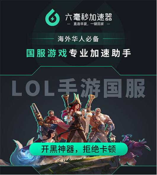 与国内用户相比,海外用户想在LOL手游国服上分的难度就大太多了,首当其冲的就是海外网络的问题。由于国外距离国内游戏服务器太远,海外在玩LOL手游国服的时候,经常会发现延迟高、不稳定、语音无法使用、团战的时候卡死的情况,很难打出漂亮的战绩。花10秒钟下载一个六毫秒加速器,通过高速线路直连国内,就能有效解决这些问题。