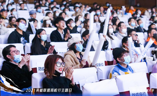当陈一冰提到,大部分职业选手们都视《英雄联盟》为战场,愿意为团队荣誉,为国家的荣耀,耐住枯燥的训练,面对一次一次的失败和挫折,坚持夺冠信念去拼搏的时候。不少学子都被这股电竞热血、拼搏精神打动,不约而同地鼓起了掌,向老一辈的电竞人发达由衷的敬意,现场气氛也达到了高潮。