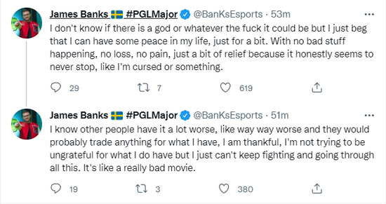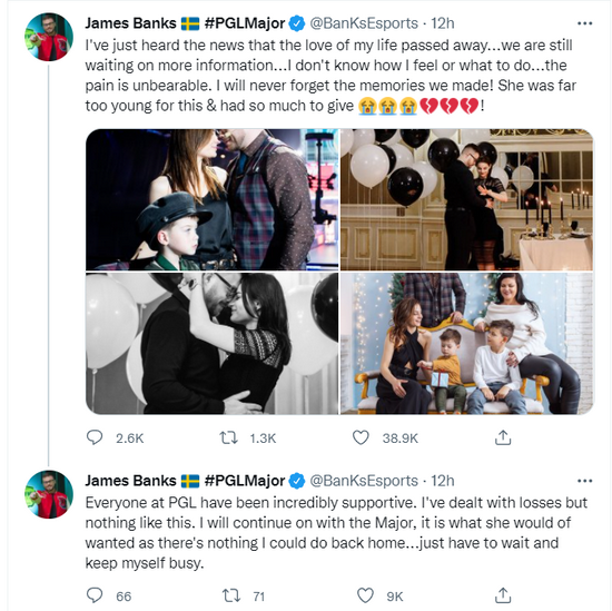 PGL Major的解说James Banks经历了一场噩梦。当他奋战在Major前线时,却收到了妻子离世的噩耗。