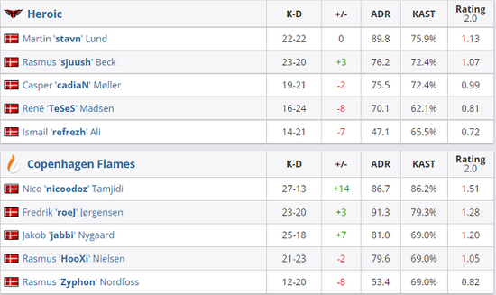 Heroic 2-1 Copenhagen Flames(Nuke 16-4;Ancient 13-16;Overpass 16-11)