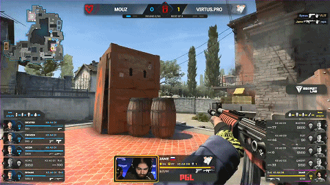VP开局便迅速进入到比赛状态中,在赢下手枪局后VP再度拿到5-0的完美开局,mouz似乎还没有从上一张图的惨败中缓过神来,开局没多久便被VP打掉几人,mouz的进攻也始终打不开局面,VP一度将比分拉开至8-0,而后mouz靠着ropz灵性绕后配合队友前后夹击,mouz拿下首分,但损失一分对于手握八分领先优势的VP无关痛痒,A区的斜坡在YEKINDAR的控制下mouz根本占不到什么便宜,打不进A区的mouz转变进攻方向,向B区发动了一波攻势,mouz再拿几分,半场战罢双方比分10-5。