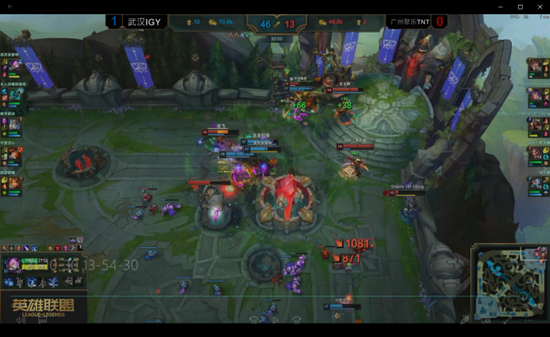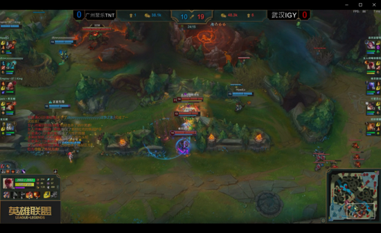 双方都是斗志昂扬的青少年,怎么能少的了“友好的”交流互动呢?果不其然,在蓝色方基地快爆炸时,双方便上演了一场小型故事会,蓝色方基地在双方的欢笑声语中被摧毁,IGy拿下了第一场比赛的胜利。