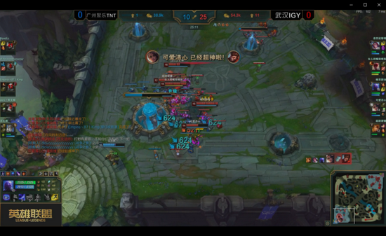 在游戏中期,蓝色方通过出色的地图视野掌控和各种小规模团战的默契配合,将经济领先到了1W1,而红色方这边经济和视野都非常缺乏,选出的还是对线英雄,前期没打出优势则毫无翻盘的可能性。