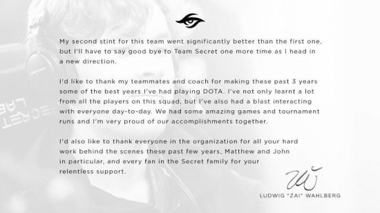 我在Team Secret的第二段征程要比第一段好太多了,但我还是不得不再一次和Secret说再见,因为我想踏上新的旅途。