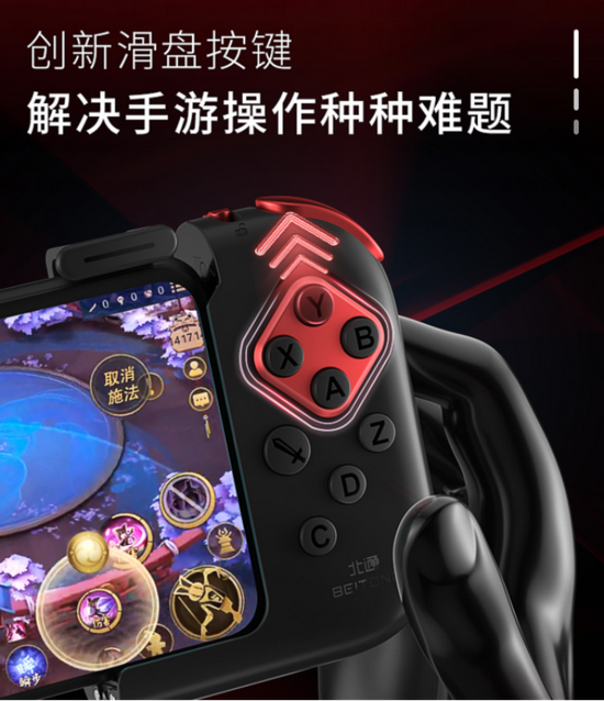 而为了打造独特的二合一滑盘按键,在官方的导购页中可以看到北通G3采用了首次出现的双滚轴结构。上下两层滚轴叠加,让滑盘获得了不限定方向的滑动的能力;在滑盘的底部使用平移摇杆来让滑盘获得归中、移动的功能,而这种在平面上移动的方式,也和我们使用手指直接触控手机十分相似。这种0学习成本的操作方式不仅能还原我们熟悉的触屏操作,还能将摇杆的优势发扬光大,一想到能在手游中使用滑盘摇杆来爽快出招,怪不得让广大MOBA玩家期待满满了。