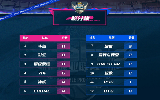 2021《街头篮球》FSPL职业联赛第2周的比赛在上海浦东长泰广场圆满结束,斗鱼以及彩虹战队职业组取得全胜高奏凯歌,最终斗鱼以11分领跑积分榜,让我们一起去了解下比赛详情!