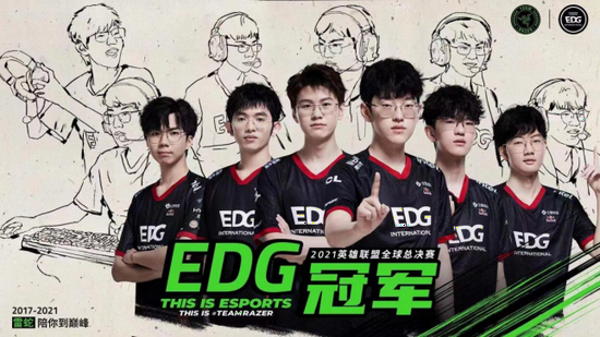 回顾今天这场比赛,我看到的不是成功者,而是一群最失意的失败者,登上了那座他们梦寐以求的山巅。上单Flandre出道7年,初登赛场时就被评为LPL年度最佳上单,却是第一次进入S赛的舞台,第一次让世界看到他这个“23岁的天才少年”。打野Jiejie,作为新鲜血液,粉丝们对他抱有期待,但也偶尔会因为期待太高而失望。在那一众新生代打野中,他并不是最受期待的,就像当时大家对EDG的态度一样。中路Scout,2015在巅峰SKT作为Faker替补的替补出道。Scout面前的是世界最强的两个中单侯爷和Faker,永远都是看饮水机。2016年加入EDG,每年满怀希望,现实却是八强八强十六强。下路Viper,格里芬解体后直接从常规赛头名掉到末尾。20年春天保级赛,他没能为格里芬保住LCK的席位。随后他远走HLE,但又只拿到常规赛倒数第二的成绩。从出道错失三连跳机会到憾取三连亚。辅助Meiko,2015年于EDG出道。他初入EDG时,EDG是LPL的顶梁柱,MSI冠军,LPL联赛冠军。可随之而来的,却是三个八强,一个16强。除了S9、S10没有进入世界赛,其余每届S赛EDG的成绩都没有超过八强,伴随这些加身的EDG战队,是一个去了世界赛,也没有人会抱有希望的战队,即使它是夏季赛的冠军,即使它的队员们已经更换重组……
