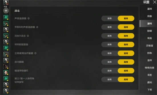 探声、滚动、陀螺仪都可以根据个人操作习惯进行设置,但是滚动设置中如果选择双击蹲下,就会翻滚,长按就会趴下,使用起来还是容易误操,另外,瞄准镜和抵肩模式设置,选择组合按钮,你开镜的时候就会肩瞄,如果玩家腰涉打的号,建议选择独立;其他设置,都可以根据个人习惯设置。