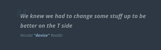 Q:最后一个问题,Astralis也发生了很多改变,zonic,dupreeh,Magisk都被下放了。基本上从你在Astralis的时间来看,现在只有gla1ve和Xyp9x还在,而其他队员都是新人。device和Astralis之间的竞争现在已经结束了吗?他们现在是另一支队伍了吗?