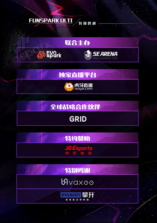 本次FUNSPARK ULTI赛事将全程由虎牙直播平台独家直播,更多精彩赛事内容请前往FUNSPARK ULTI虎牙独家直播间:660010