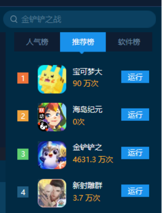 2、安装之后启动主程序,在搜索栏里输入“金铲铲之战”,搜索出来后点击安装